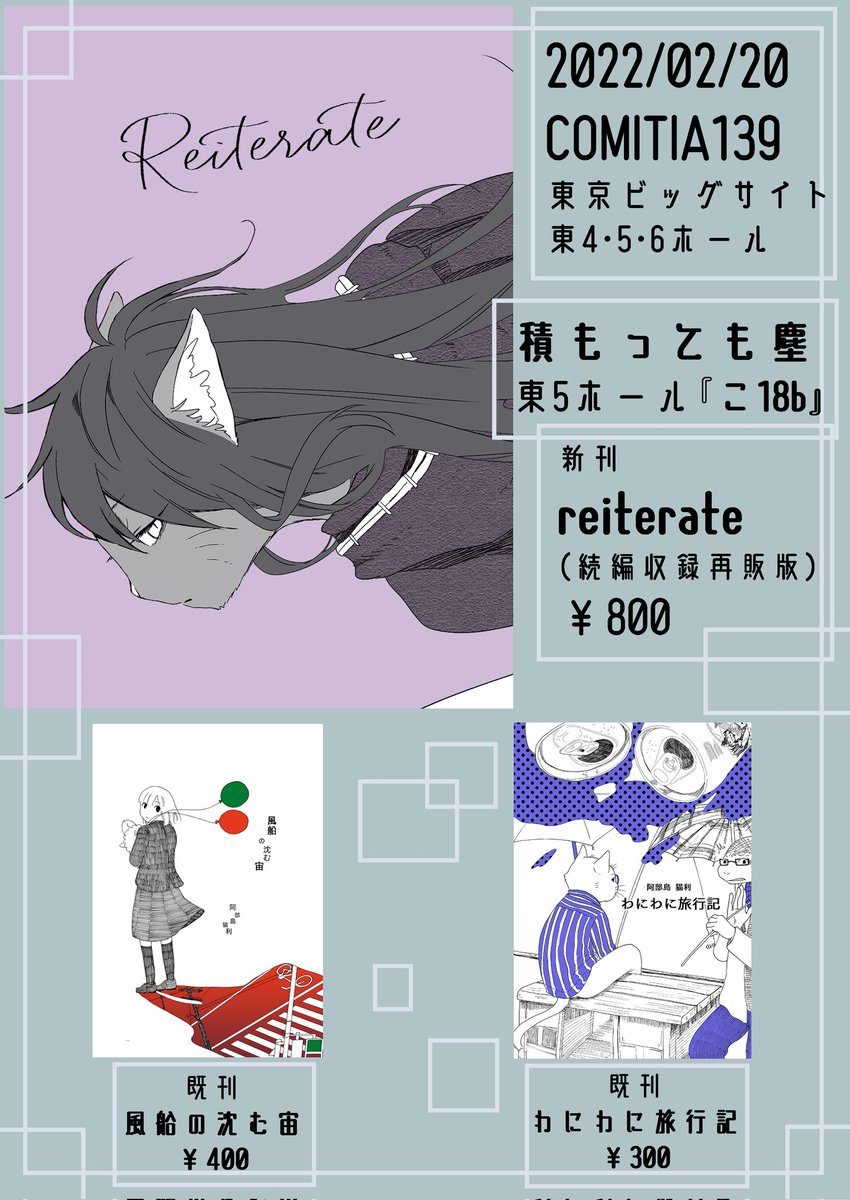 2月20日のコミティア139のお品書きです。今回は青海展示棟ではなく久しぶりの正真正銘ビッグサイトです。 既刊は残部数僅かですので気になる方はお早めにお越しください。 『こ18b』にてお待ちしております! #コミティア139 #COMITIA139 #お品書き
