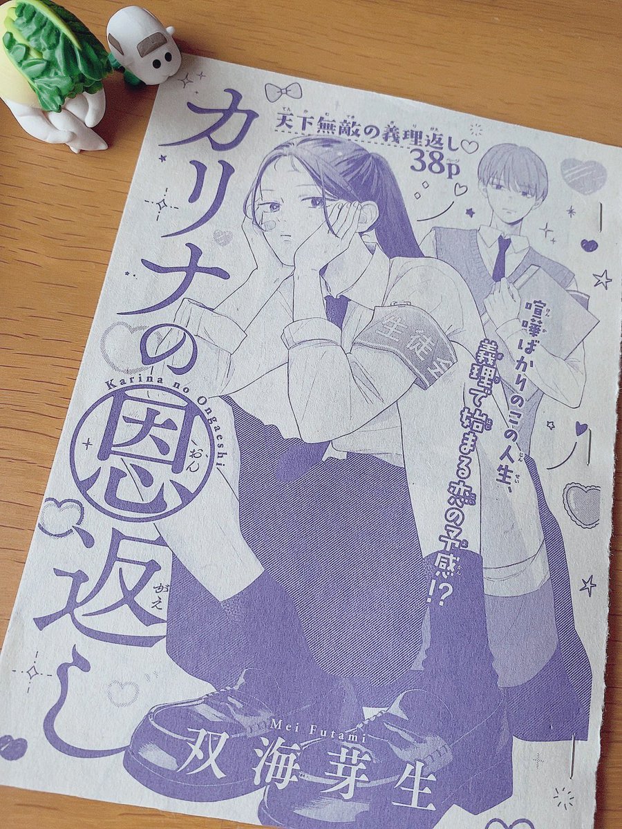 お知らせ ☁️ 別マ8月号 別マBABYにて 「カリナの恩返し」掲載させていただいております! 元ヤン カリナが恩返しのため生徒会に入って大暴れする話です💥 楽しんで頂けたら嬉しいです˘ᵕ˘ 3枚目はカリナとくれは(友)のツーショプリみたいなものを描いてみた👯♀️💜 よろしくお願いします