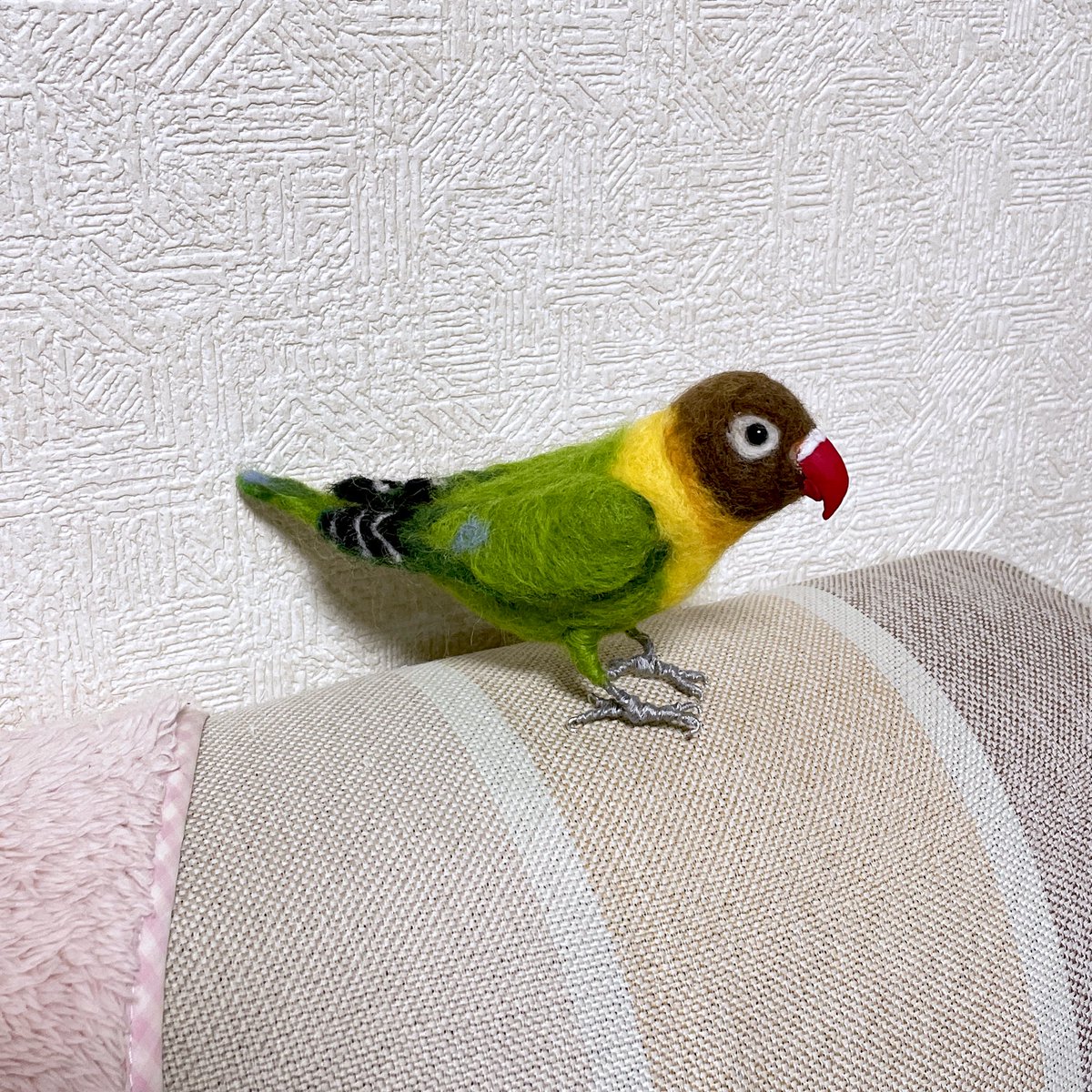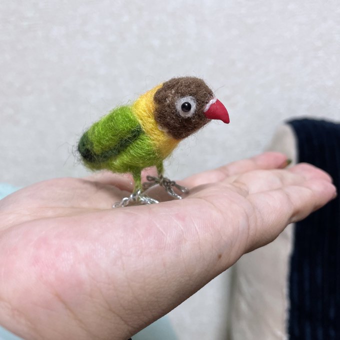 ツバキ2号!🐤 いやー、顔似ない〜…😇😇😇😇 #羊毛フェルト #ボタンインコ