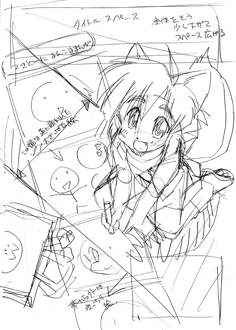 一番わかりやすく残っていた一組。 ヽ(゚▽゚)ノ 前にもアップしたはずなので新鮮味は全くなしでございます。 問題になるはずはないと思いつつ、この頃はまだ【ななみまっしぐら】は芳文社様と出版契約が残っていたためギリギリこんな感じに。 #このタグを見た人はラフ画とその完成絵を見せる