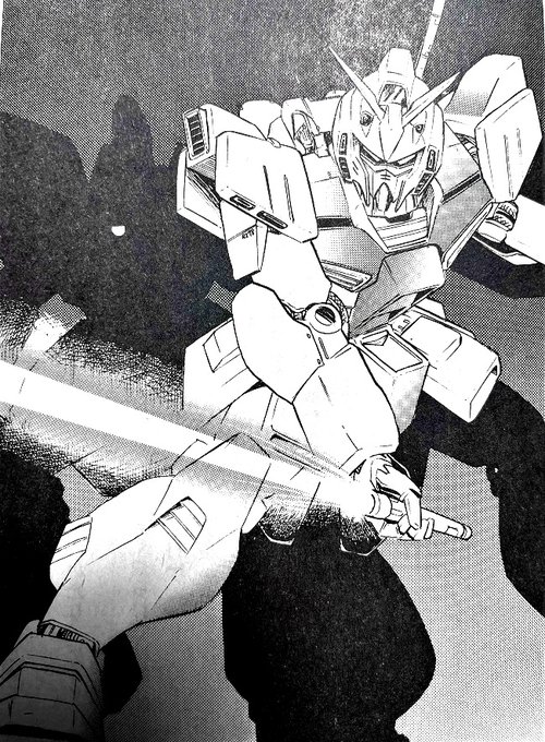 ガンダムの疑い・・・そういえばと自分が描いたこいつは確かGMをベースにしてニュータイプの戦闘力をコピーした感じでカスタマイズ・・・・っていう設定の上で描いたGM、あくまでGM。 それが証拠にエルボーガードが残ってる! 画像はバンダイ刊ゲームブック「ガンダム0087 ジェリド出撃」の挿絵。 twitter.com/jgdjgdjgd/stat…