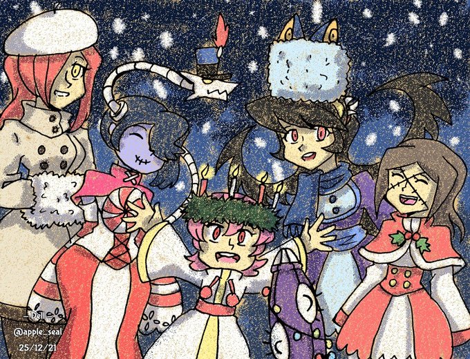 Happy Christmas! Umbrella and her sister, Parasoul and her friends. #Skullgirls #MerryChristmas #fanart