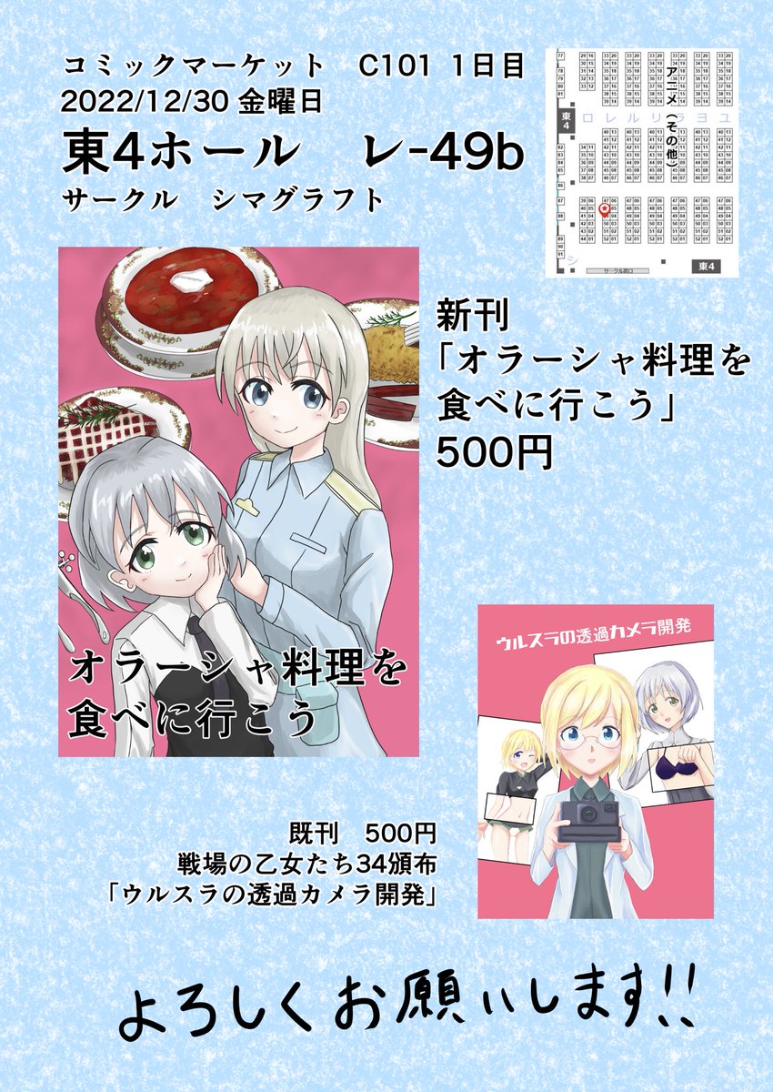 サークル「シマグラフト」でコミックマーケット101に参加します! 2ページ目もペン入れ終わった!! オラーシャ料理を食べに行く話です! よろしくお願いします! 「金曜日東地区 "レ " 49b」 コミケWebカタログにてスペース配置場所公開中です! webcatalog.circle.ms/Circle/Map/168… #C101WebCatalog