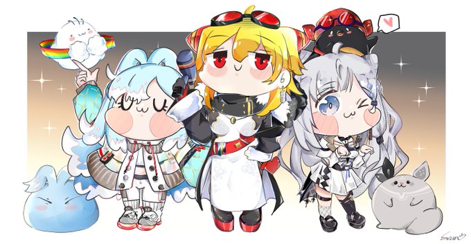 sorry I'm late Happy 1st anniversary HoloID3 forever 📜☔️🔨 🤍💙💛 #Zetacrylic #AeruSeni #inKaela #hololive #HololiveID