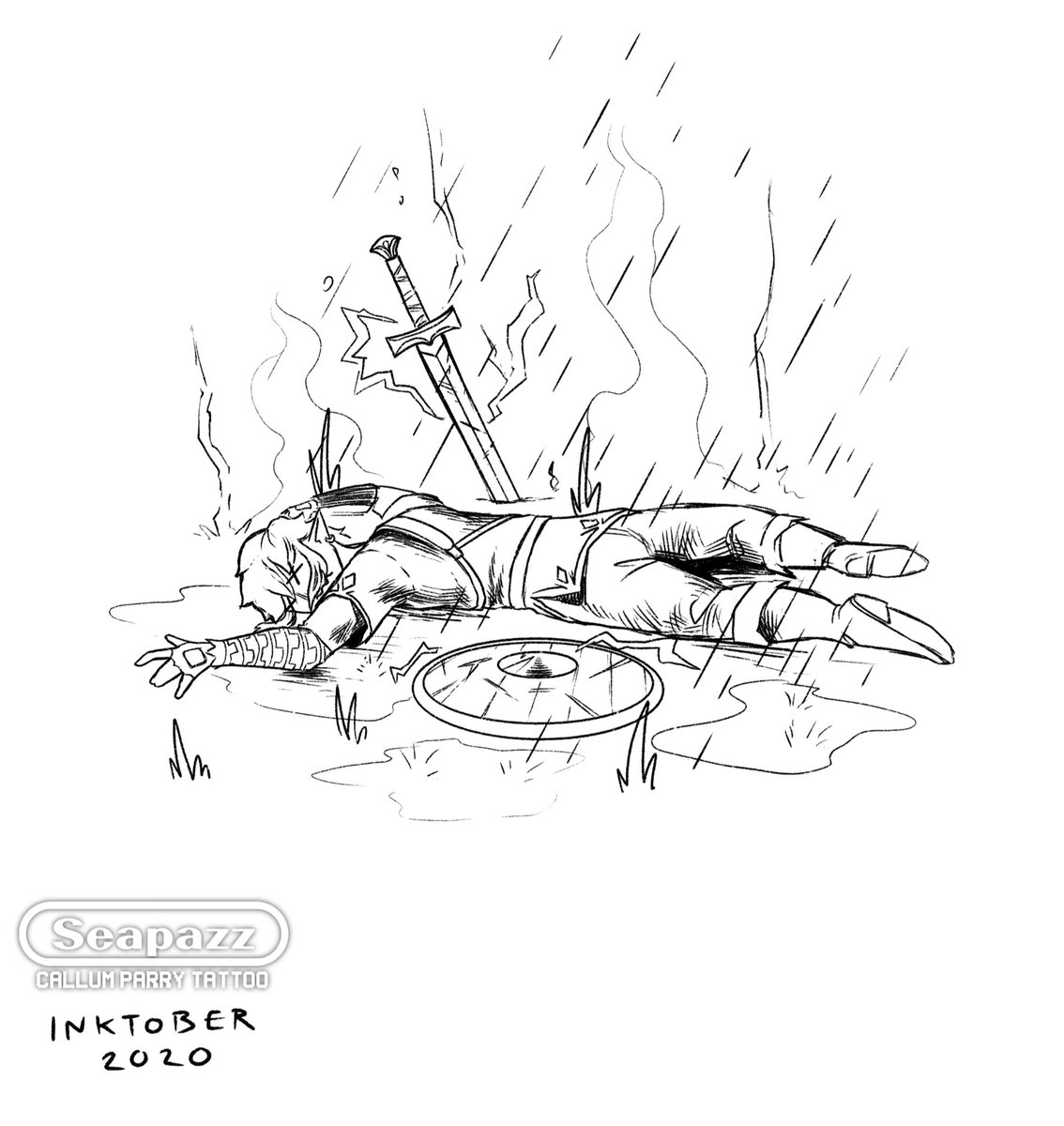 #inktober2020 day 15, armour. I figured what’s one more Zelda piece? Visibly beat up Link wearing hylian soldier armour. #art #inktober #inktober2020day14 #inktoberday14 #linktober #zelda #zeldafanart #nintendo #botw #BreathoftheWild #AgeOfCalamity #HyruleWarriors #botw