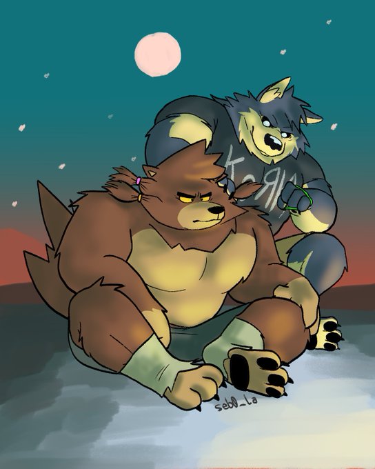 #ArtFight2022 friendly fire attack to @soildweller ! Brent may look intimidating as a werewolf, but as a werewolf Paul can turn a grumpy ol' furry lad in a perfect hairdressing puppet. They may be full of muscles but these can be useful for fashion purposes too.