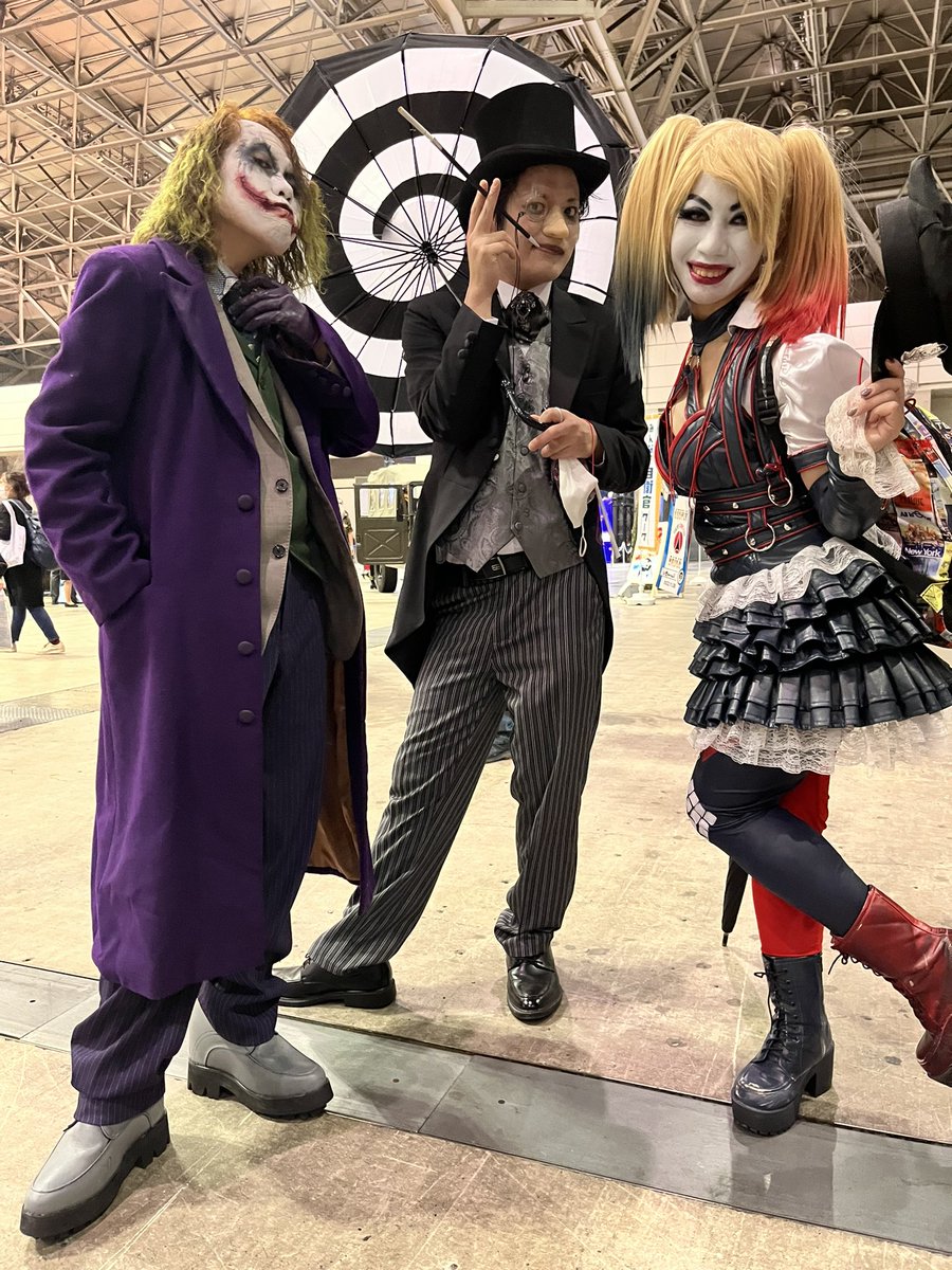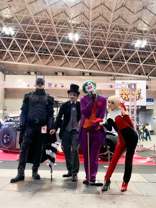 betty (.^_^.)さんから 頂いたこの写真がそれぞれキャラの個性を反映してて良い… #東京コミコンコスプレ #東京コミコン2022 バットマン @RAMu_QV66 ジョーカー @jokerfreeza0710 ハーレイクイン @ksxxxx69 ペンギン @sebastianus287 twitter.com/showmstgon/s…