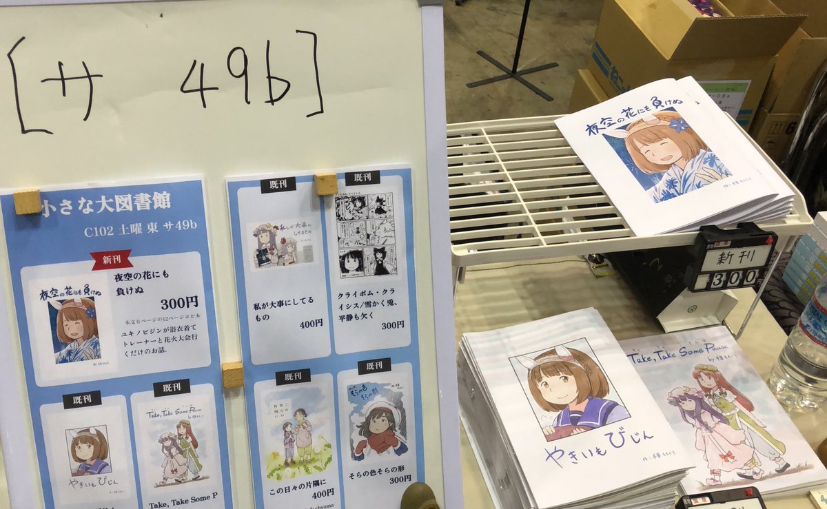 ◎あなたのサークル「小さな大図書館」は 土曜日 東地区 “サ” ブロック 49b に配置されています。 無事当選しておりました!今回もユキノビジンとトレーナーの話描こうと思います。 webcatalog.circle.ms/Circle/Map/173… #C102WebCatalog #コミケ102