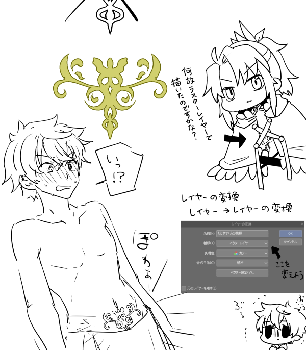 槍と盾とラフちゃん落書き
