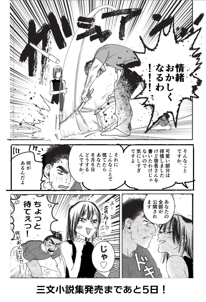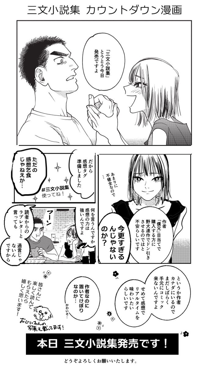 【告知】 8月6日に初の漫画短編集「#三文小説集」が発売されることになりました🌜🐺 野犬シリーズ3つ、過去作1つが入っています。 なんと帯は「うた恋い。」の杉田圭先生からいただきました!麗しいツキさんとかっこいい橘を是非見て欲しいです どうぞよろしくお願いします amazon.co.jp/dp/4046806206/