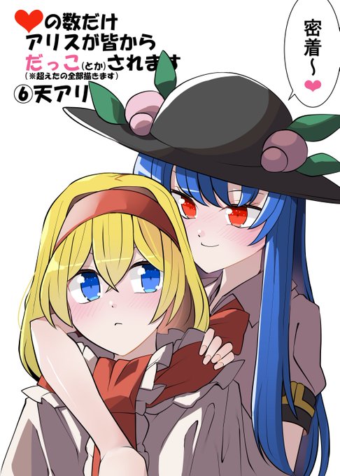 いいねの数だけアリスが皆からだっこされます ❤12000↑:天アリ #東方Project #アリス・マーガトロイド #比那名居天子