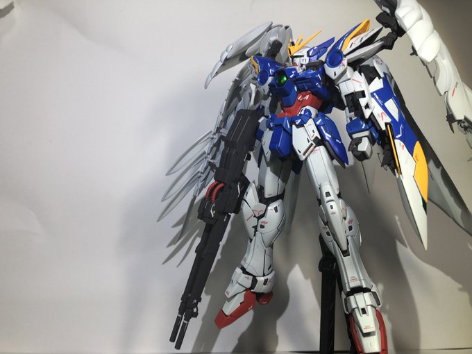 青はキットより明るくして、肉抜きや主翼の合わせ目も消しましたー❣️(๑′ᴗ‵๑) 凄くカッコよくて満足満足で〜す❤️😍 #gundam #gunpla #ウイングガンダムゼロEW #今月作ったプラモ晒そうぜ