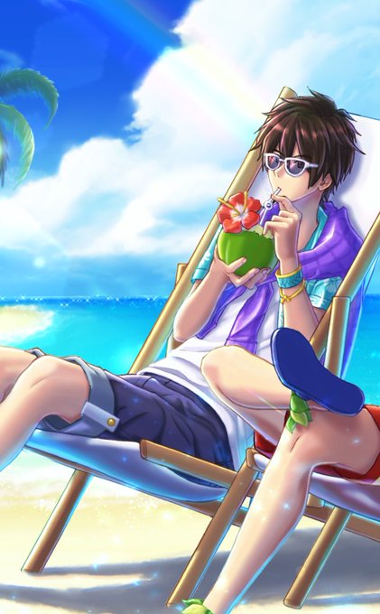 皆様夏休みは いかがお過ごしでしょうか? 僕は徹夜で完成させたイラストを たった今投稿したよ(;´∀`) それは アロハ姿の #シェゾ と バカンスの #ラグナス が 一緒に #ビーチ で過ごすという 夢のような絵さ。 はは、素敵だろう…?ヽ(°▽、°)ノアヘヘヘ #夏 #イラスト #海