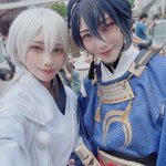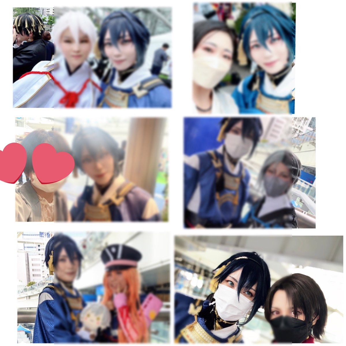 #これをみたフォロワーさんはコスしているときとしていない自撮りをセットで晒して 1枚目は旅行オフショ 2枚目はステージ後オフショ 3、4はコス(鶴くんは巻添え) 並べるとおもろいね( ^ω^ )