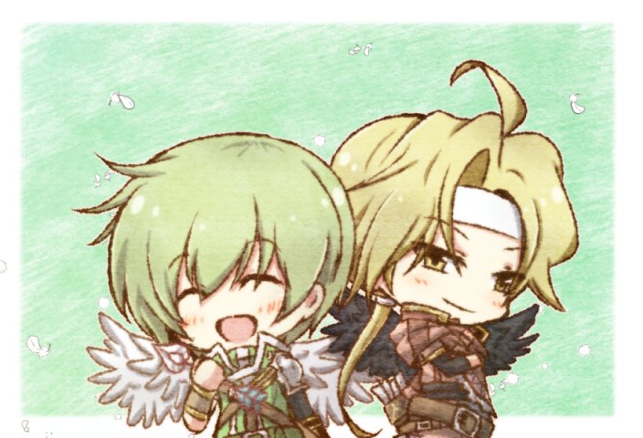 3 16 遅刻すみません。お題「青」でアスベル。髪と目は緑だけど服は青なので… #FE版深夜の真剣お絵描き60分一本勝負 21/03/11 01:20