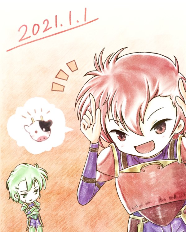 4 10 お題「新年/はじまり」で暗黒竜バージョンのカイン+アベル。(カインが)牛つながりということで… #FE版深夜の真剣お絵描き60分一本勝負 21/01/02 23:36