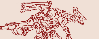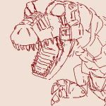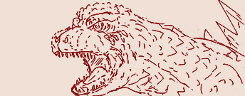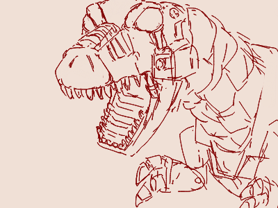 ゴジュラスのようなナニカ 頬に機関銃を 口の開閉にシリンダーを 以外はなーんも考えてない落書き 寝る