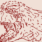 早速マイナゴジ描いたよ イケメンだね 歯がワニみたいにまっすぐではなくティラノサウルスみたいにバナナ状になってるようだ ただれた部分を描くのが難しい