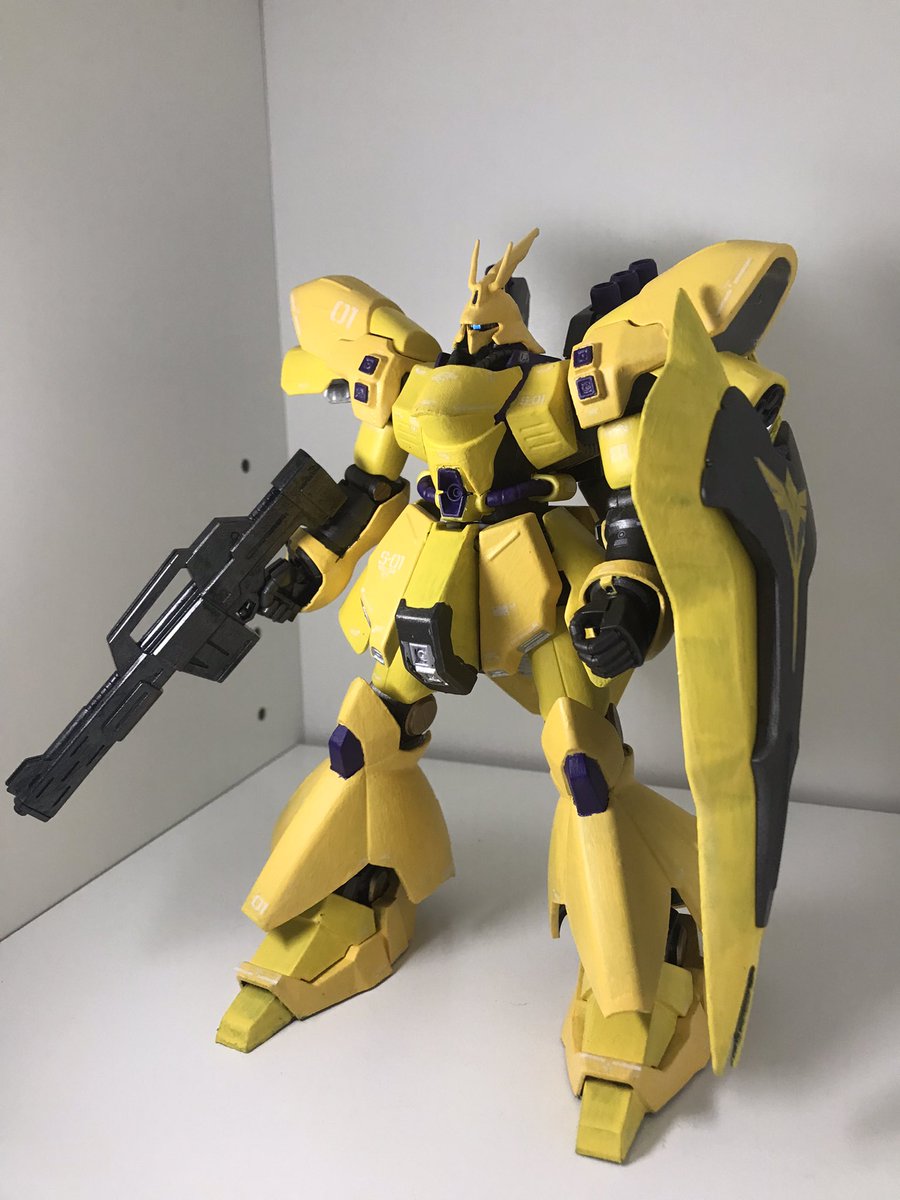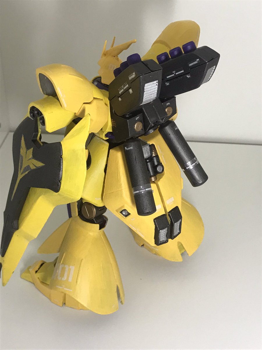今年最後はサザビーーーー! 機械部分の塗り分け(関節、バーニア)を頑張ったよ 見ずらいけど黄色2色と紫色です。 最初は紫の部分を赤にしようとして 「これズサやん…」 ってなったのは内緒である。 #ガンプラ #サザビー #ガンプラ好きと繋がりたい #ガンプラの画像貼るとRTされると聞いて