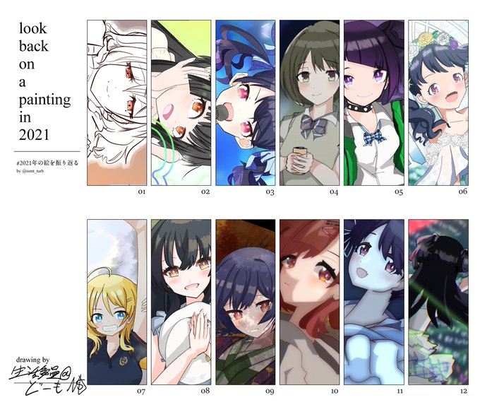 11 30 #2021年の絵を振り返る 今年の抱負が絵をたくさん描くだったのですが初めて抱負というものを守ったかもしれない 21/12/17 21:21