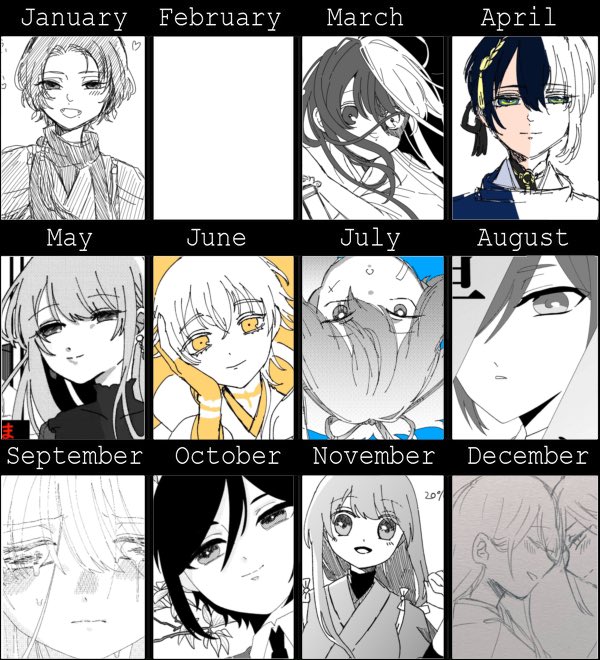 今年も刀さにいっぱい描いた1年だった!!!!!!!!!!!!! 上達したかはわからぬ!!! 塗りとか頑張った!!!!!!!!