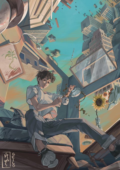 posted this on tiktok and ppl wanted me to post it on twt too so here commission for @killu_z 🌻 #ghibliredraw #Ghibli #HowlsMovingCastle #artistsontwitter