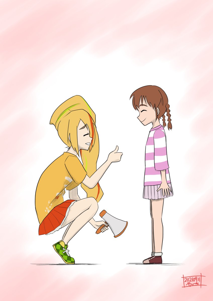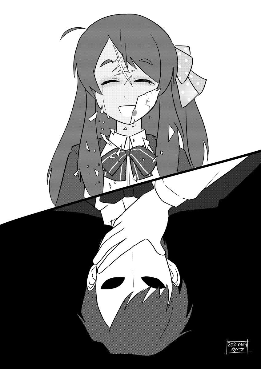 #ゾンサガ版深夜の真剣お絵かき60分一本勝負 お題「ゾンビランドサガリベンジ~十一話」 ゾンビィの素顔でフランシュシュとして認められたさくらと、巽幸太郎としての仮面をかぶり続ける乾。 ※ワンドロ時間にPCに来れたのでもう1枚