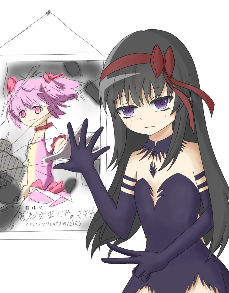 これはワルプルギスの廻転のポスター前で記念に写真を撮るほむらちゃん妄想。 #まどマギ #イラスト