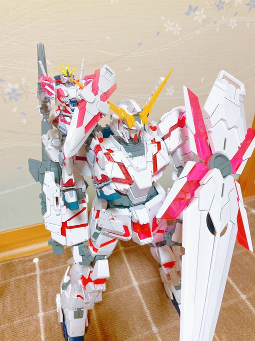 東京行きたいなぁ… ユニコーンみたいなぁ… あ!メガサイズで再現しよう!! で、加工したりして出来上がったのがこれw 比較しちゃうと全くちがうw でも気分だけでも東京行きたいじゃん…?w #ガンプラ好きと繋がりたい #ガンプラ好きな人たちと繋がりたい #ガンプラの画像貼るとRTされると聞いて