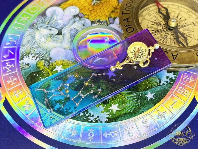 【満月夜の羅針盤~冬の大三角形・栞~】 月光と羅針盤が読書の案内役🌙 頭の中の小宇宙(シナプス)にアクセスする切符。 コンパス部分はきちんと動きます(*´▽`*) #レジン #ハンドメイド