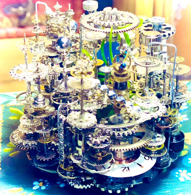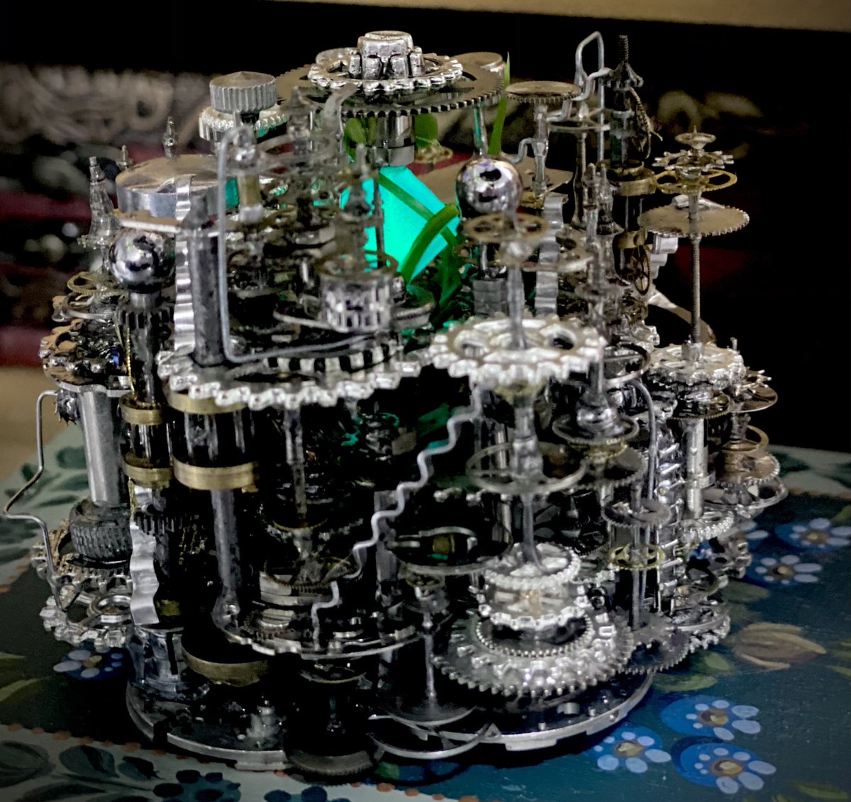 20 104 オブジェ分組み立て中⚙️ 真ん中の結晶は暗くなると光ります💡 22/12/29 17:22