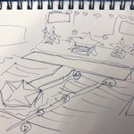 今日のライブ楽しみ!ホテルで団扇を描いたよ!持っていくうう! アザブエリアを推してく!アザブエリアのスポンサーだもの! 下書きからペン入れまで #電音部3rdLIVE_DAY1 #電音部3rdLIVE