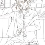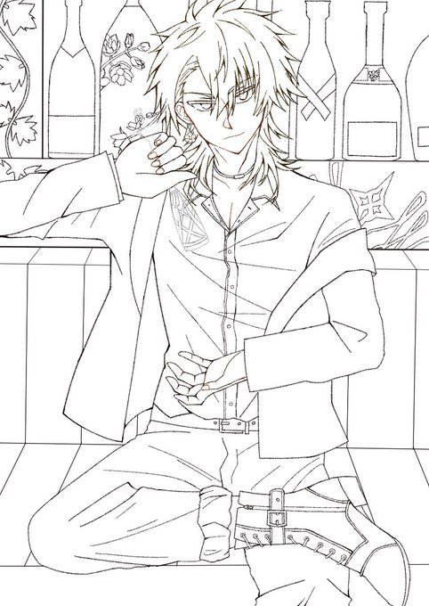 「安らぎの一時を楽しむか?」 ノクス・ヴァニタスで参加しました! 主催者さん、素敵な企画をありがとうございました✨✨ ロザリアちゃん達とのパーティー後のノクスさんです🦋𓂃 𓈒𓏸 #黒ウィズ9周年パーティーイラスト企画