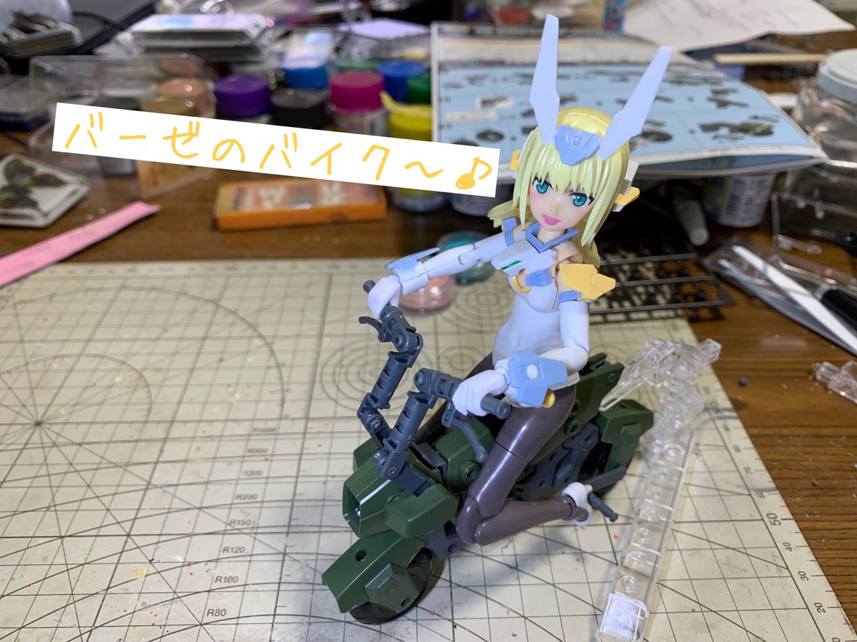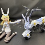 「バーゼのバイク〜♪」のネタで変なスイッチ入ってしまい、こーなりました。 ガンプラからウサ耳みたいなパーツ見つけて付けたのと、ウサギの尻尾がポイントです(´∀`*) #フレームアームズガール #ガンプラ