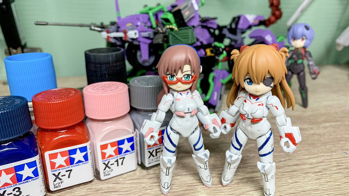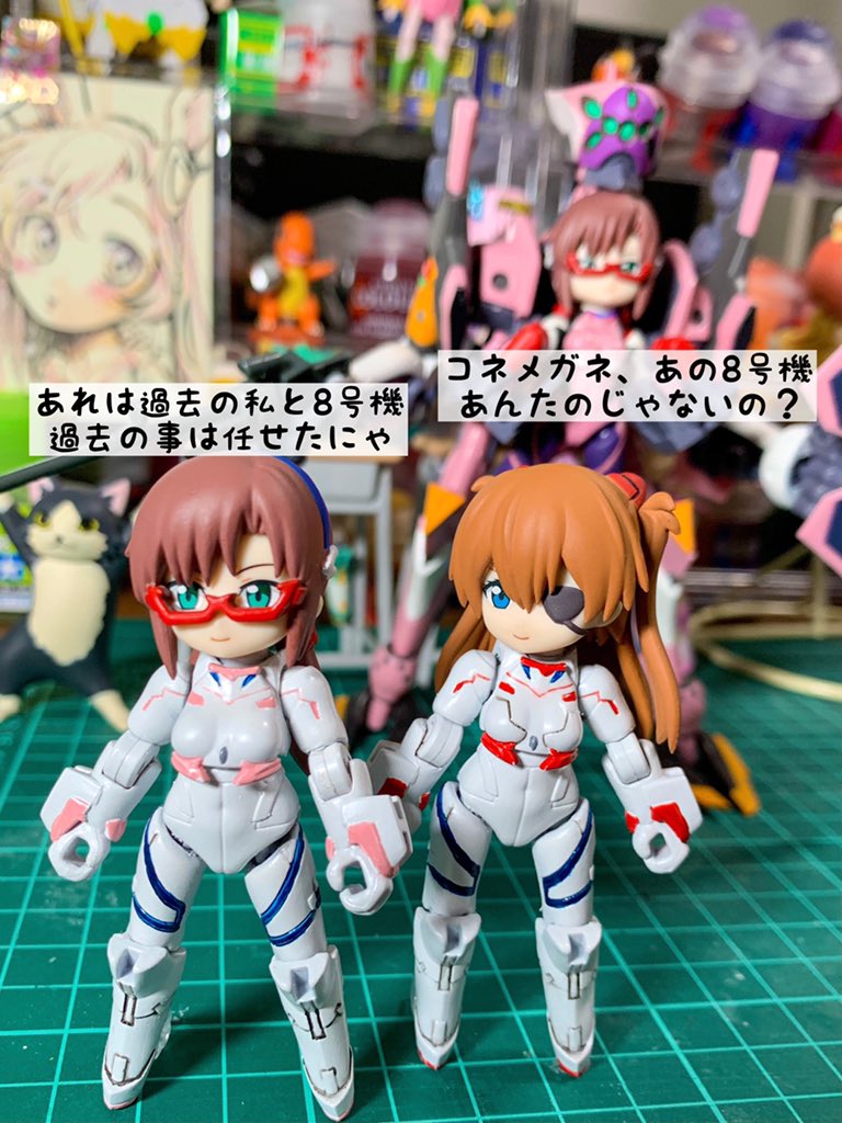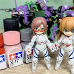 DTA マリ、アスカの白プラグスーツver.完成✨細かい所はエナメル筆塗り🖌✨ 「できたてホヤホヤだにゃ♪」 「無垢のおろしたてでしょ、死装束だもの。」 #デスクトップアーミー #シンエヴァ