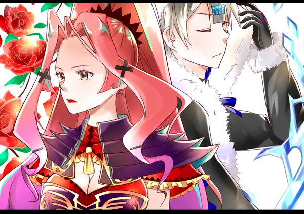 マリア様実装記念日 弓ちゃん(@kyudompass)とアラネアコスで合作絵しました!✨💫 これからもずっと私の相棒!🌹✨ #コンパスお絵描き #マリア様生誕祭2022