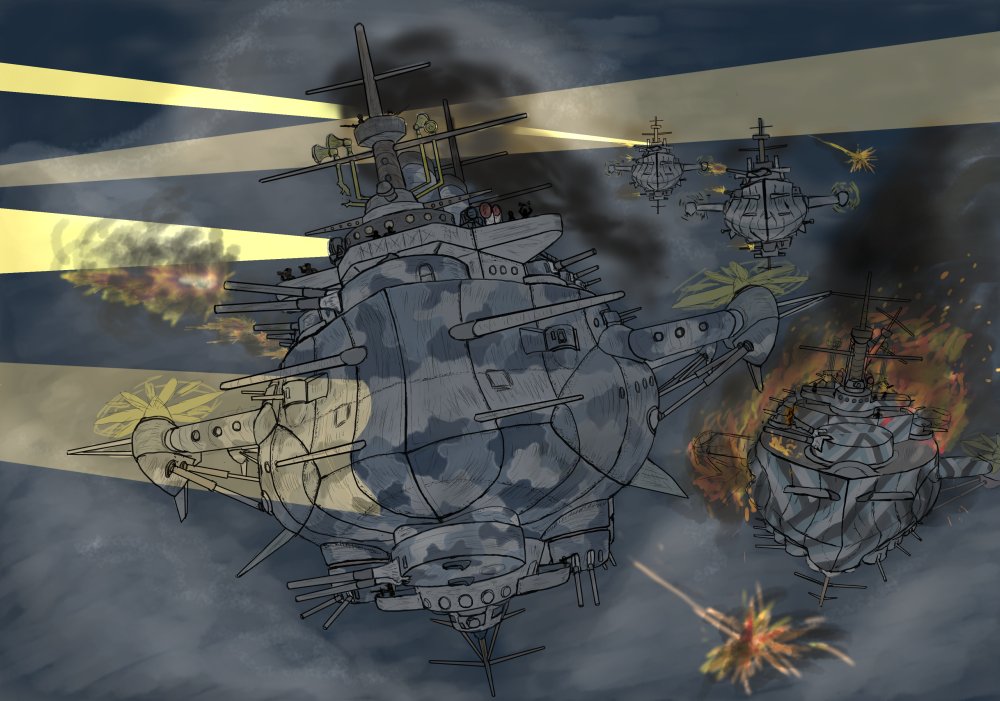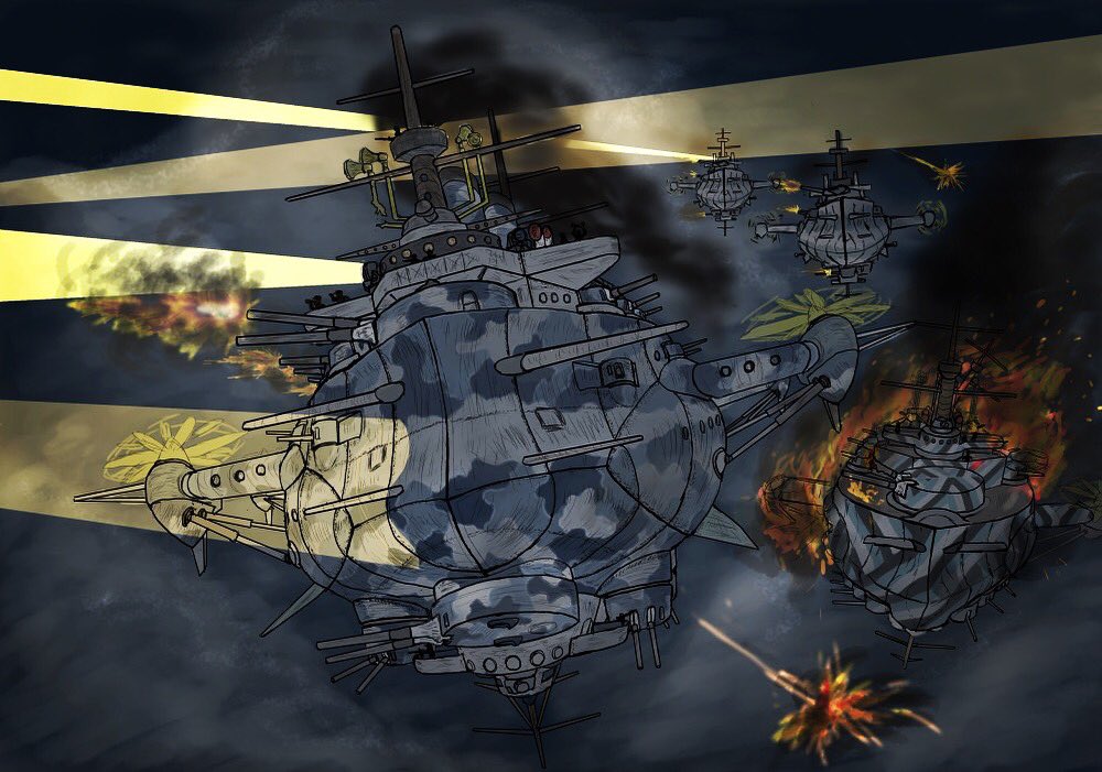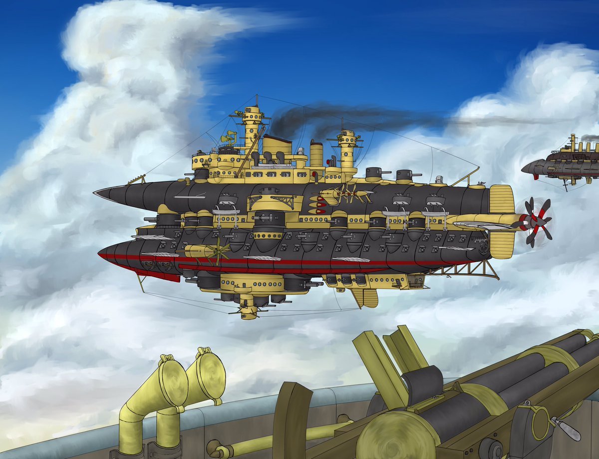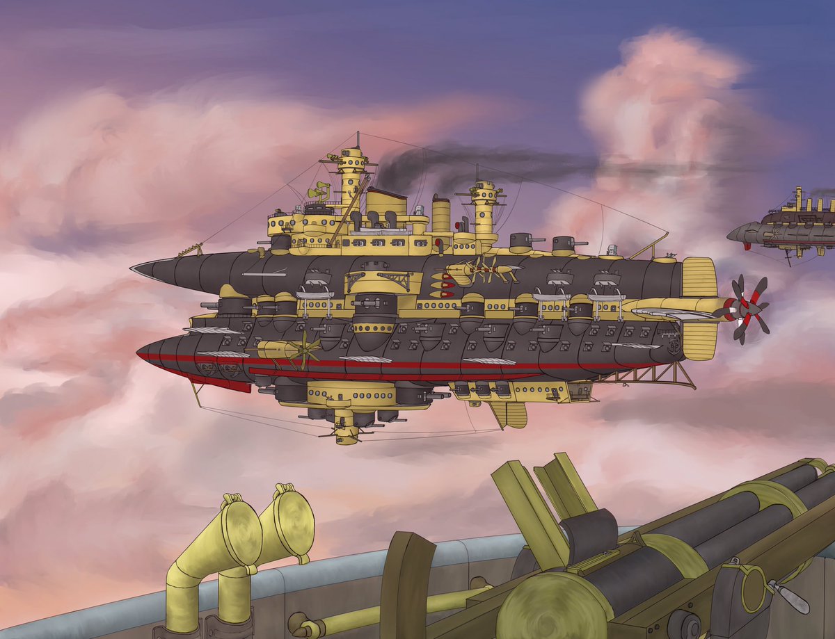 「Heavy-Heavy-Top Heavy」 〜シャルルマーニュの37mmリボルビングカノン砲座より艦隊旗艦ラ・ヴィクトワールを望む〜 3ヶ月かかってやっと完成だ! 今回は差分もあるからそっちも見ていってくれ! リプに! #鋼の鯨 #空中戦艦 #私の作品もっと沢山の人に広がれ祭り #秋の創作クラスタフォロー祭り