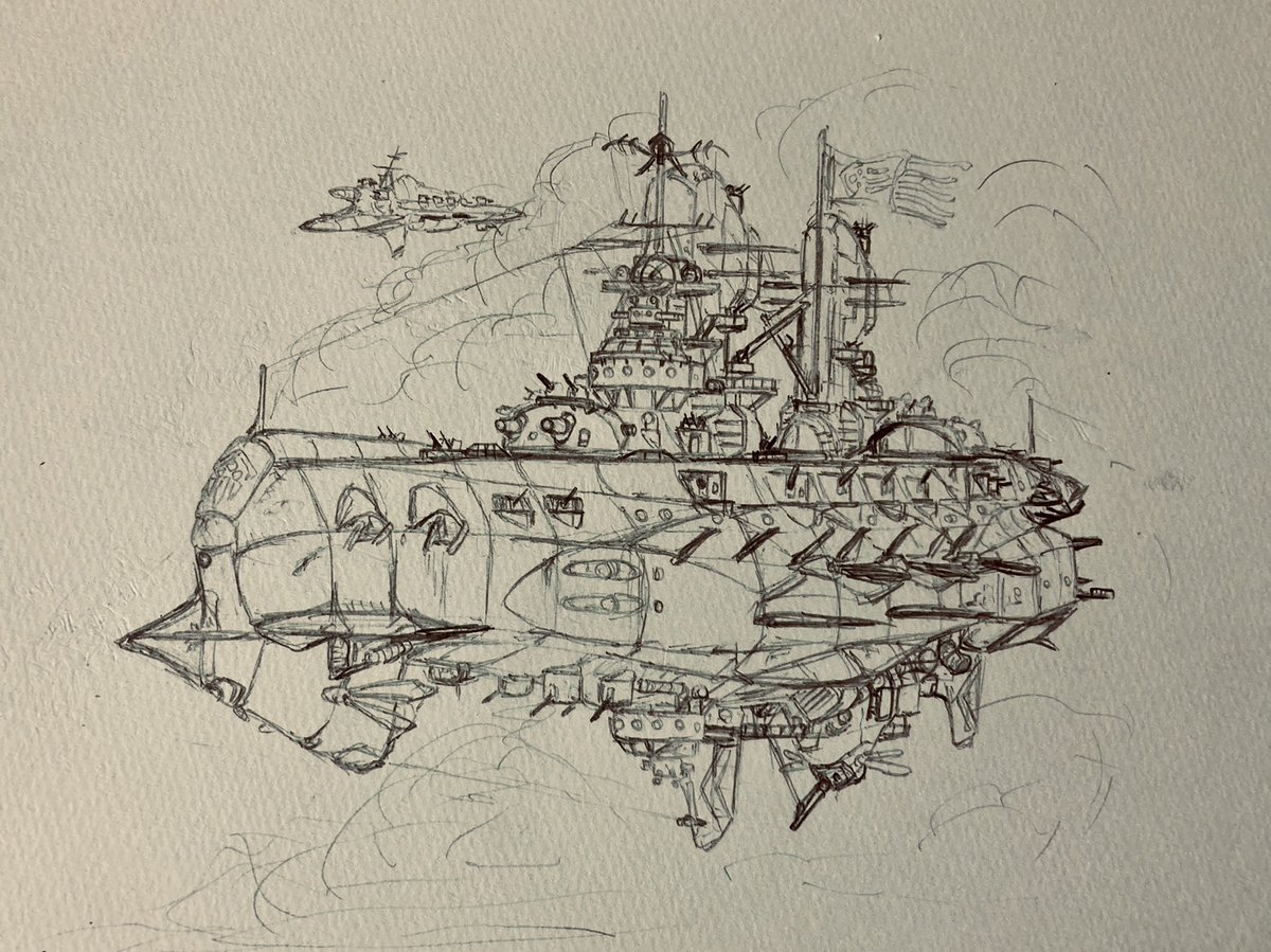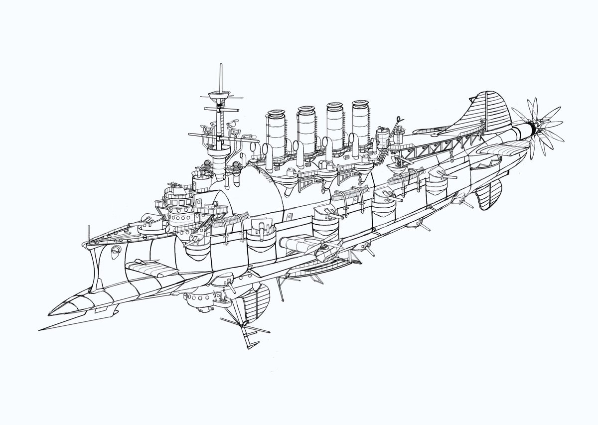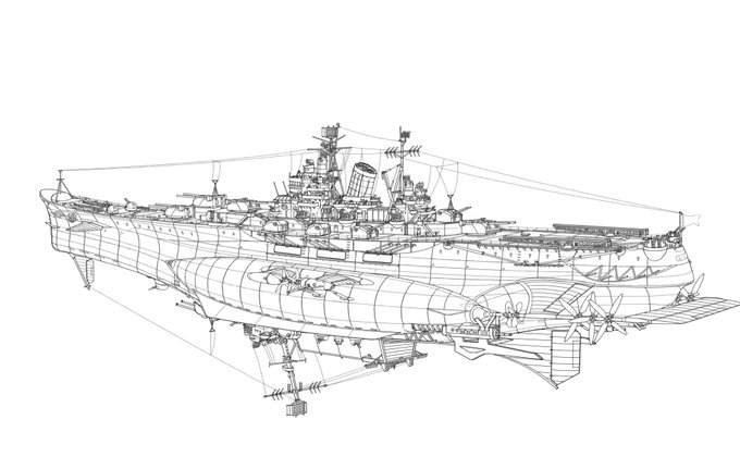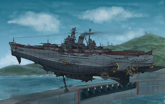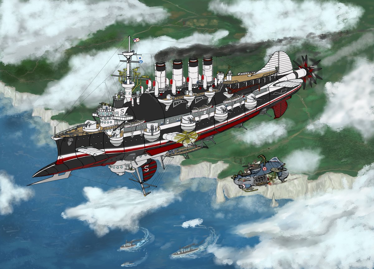 「Heavy-Heavy-Top Heavy」 〜シャルルマーニュの37mmリボルビングカノン砲座より艦隊旗艦ラ・ヴィクトワールを望む〜 3ヶ月かかってやっと完成だ! 今回は差分もあるからそっちも見ていってくれ! リプに! #鋼の鯨 #空中戦艦 #私の作品もっと沢山の人に広がれ祭り #秋の創作クラスタフォロー祭り