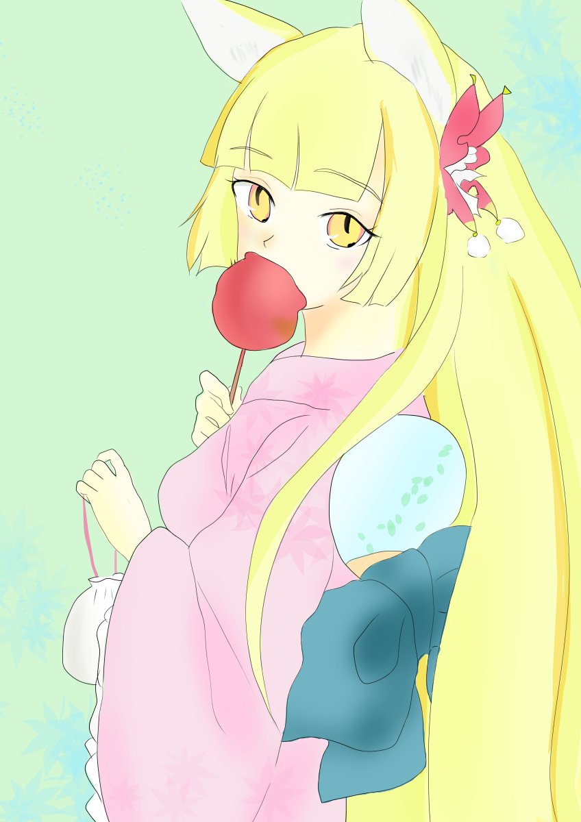 TL企画発動! きちゅねと祭りとリンゴ飴(=゚ω゚)ノ 腰がまだ治ってなくて背景凝る予定を諦めました…くそう( ;∀;) #TLオセロニア #フェスティバルwithオセロニアート #オセロニアート