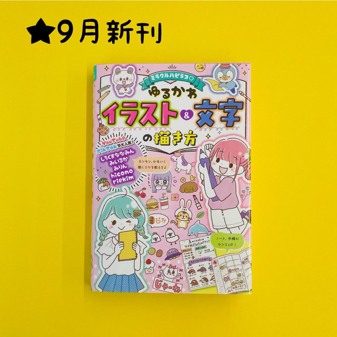 \ 明日発売 / 💖大人気!「ミラクルシリーズ」💖 『ミラクルハピネス♡ゆるかわイラスト&文字の描き方』 YouTubeやTikTokで大人気のイラストレーター5名が集結! センスよくイラストを描くコツを教えます✨ 描きたいかわいいイラスト&文字が満載😍 👉amzn.to/3wMexWd #ゆるかわ #イラスト