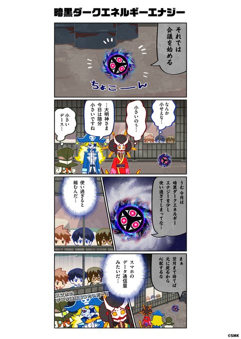 【くるみ4コマ】『くるみ』4コママンガの最新話更新! 暗黒大明神の秘密が明らかに…!? エナジーを炸裂させた暗黒大明神はアニメ本編でチェック! youtu.be/eTvozkzNU1w #7「暗黒ダークエネルギーエナジー」 #魔法少女くるみ