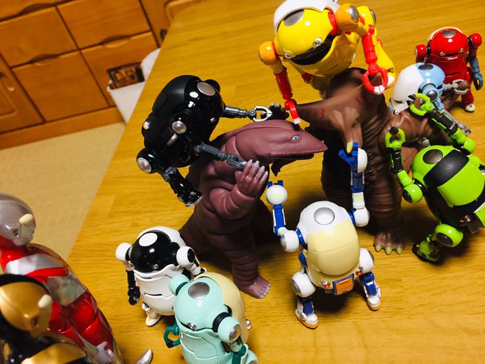 壁内から支給された神戸プリンに大歓喜の #兵長と新兵 たち。贅沢な4個入り!! さっそくひとつ調査しよう 久しぶりだね🍮なめらかで ちょっと大人の風味が美味しいよ #メカトロウィーゴ #トリックスターと日常