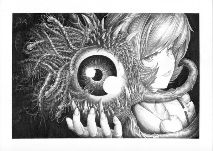 その時の感情を大事にしてる。その時の気分でしか描けない物はある。 描き初めた段階で怒ってたら、描き進めている段階で何日跨ごうと怒りを感じている時に描く。 これが怒っている時に描いたものだけど、通年であんまり怒らなくなったせいで半年掛かりました…
