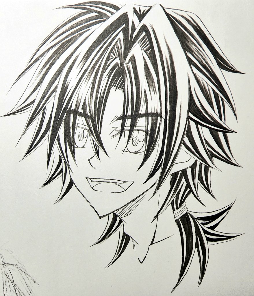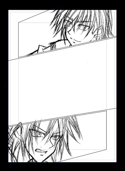 一個前にupした絵のインクが乾くの待ってる間に、オリジナル小説の挿絵の下書きしてた。顔面アップだから比較的早く描けた^ ^ けど、問題は真ん中のコマ🤔 刀突き付けてるシーンなんて描ける気がしない⋯😫 我ながらハードル上げ過ぎたかな #イラスト #らくがき #絵描きさんと繋がりたい