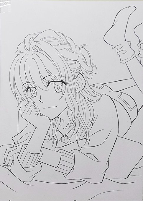 今日のあ絵描き成果。 前にUPした落書き絵をアナログ作業用にトレースしてペン入作業。 今回は気合い入れて高級紙を使ってみた。上手く塗れますように~☘️ #イラスト練習中 #オリジナルイラスト #絵描きさんと繋がりたい