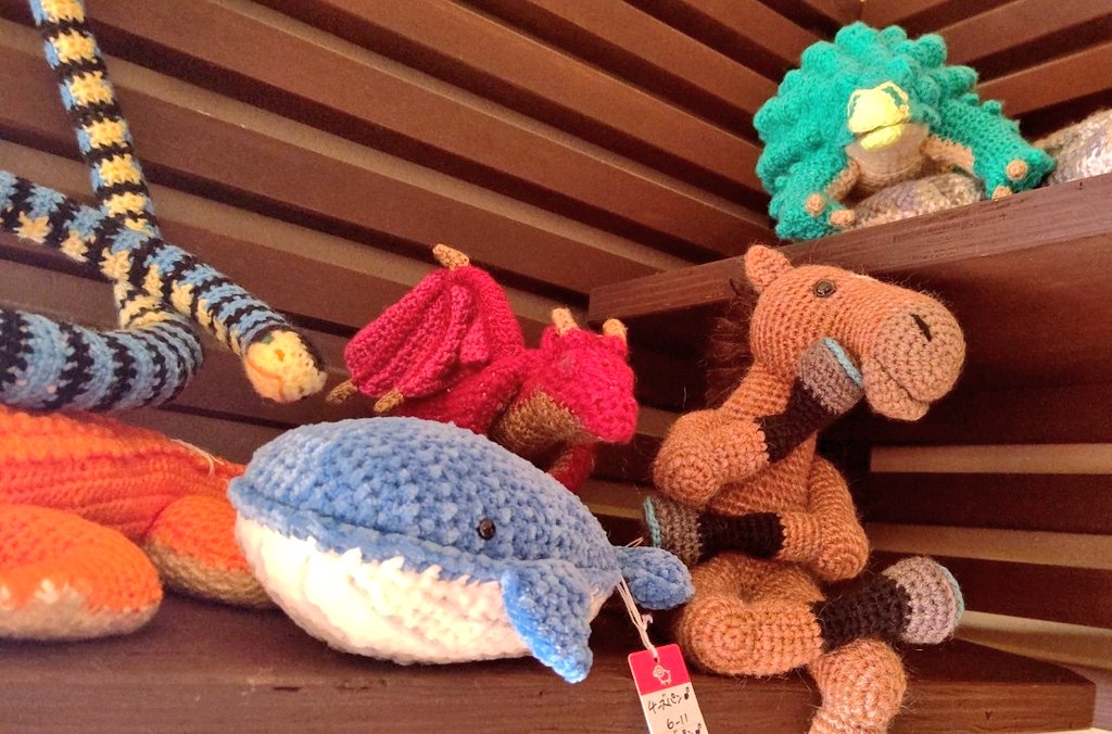 京都イコトバコさんで開催中の、 #あみコレ2022 行ってきました! sekkaのあみぐるみ達が集合しているコーナーがあったー(*‘ω‘ *)💕 魅力的な方々コーナー🦖🐋🐎🐍や、 土俵&こたつも楽しい✨ #あみぐるみ #せっかぐるみ