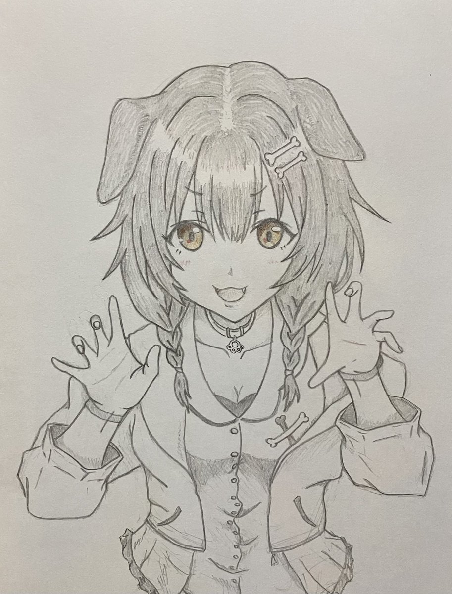 ころさん200万人おめでとう🎊 ほとんど絵は描かないけど初めてのVtuberでの推しなのでアナログだけど頑張って描いてみました🥐 いつも元気くれてありがとう! #できたてころね #生神もんざえもん