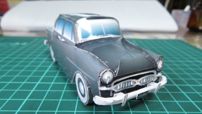 GAZOOさんの旧車トヨペット クラウン(1955年)にチャレンジしました。光沢紙でピカピカに仕上げる予定でしたが難易度高いですね。次はもう少し薄いマット紙で再チャレンジします。#GAZOOペーパークラフト #ペーパークラフト