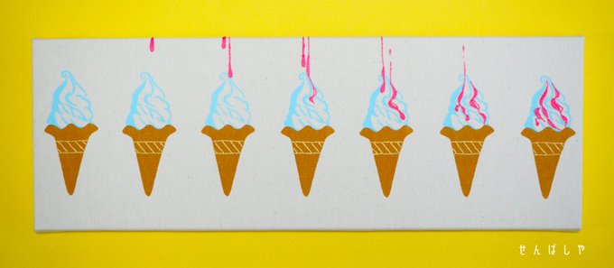4 65 昨日のいちごソースがけの全体。 ポップな可愛い感じの作品になりました🍦 #イラスト #illustration #シルクスクリーン #刺繍 #ソフトクリーム 21/08/04 18:21