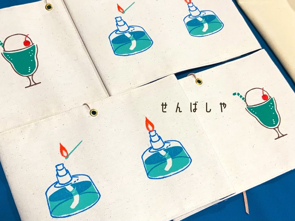 キャンペーン中、 minneのリピーター様限定で ささやかなオマケが付きます。 『せんばしや』ブックカバーを モチーフにポスカードを作りました! #イラスト